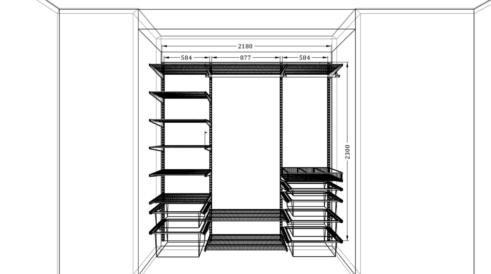 1. на основе гардеробной системы ARISTO – сетчатые стальные полки и корзины;